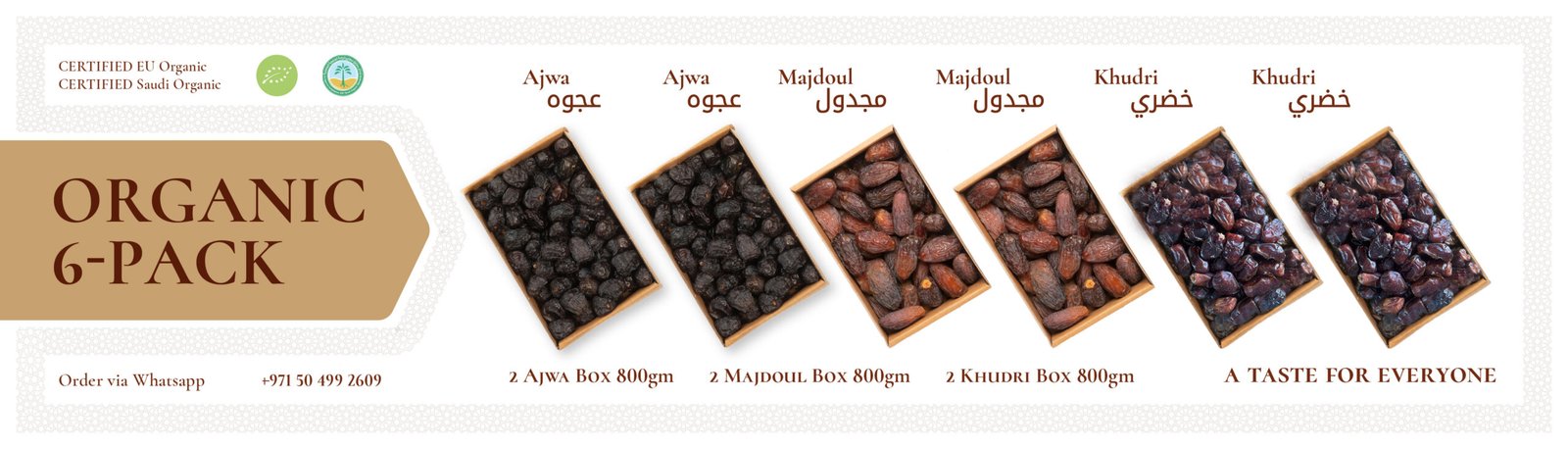 Organic 6-Pack-Mix (Ajwa, Ajwa, Majdoul, Majdoul, Khudri, Khudri)