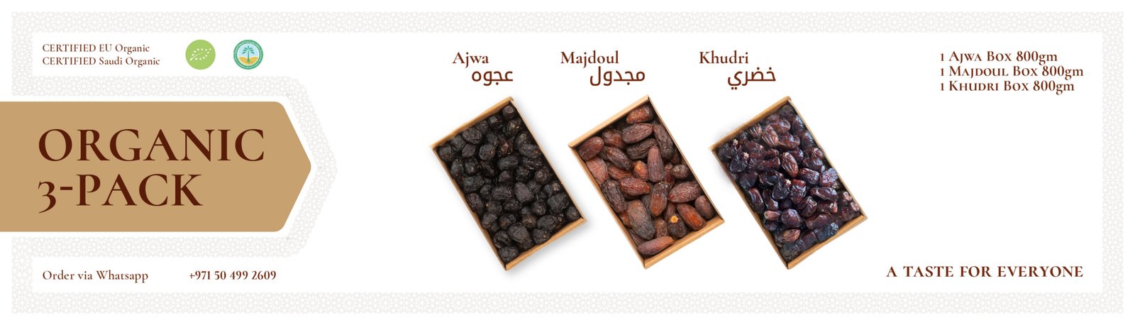 Organic 3 Pack-Qassim New Season Grade A (Khudri, Khudri, Khudri)