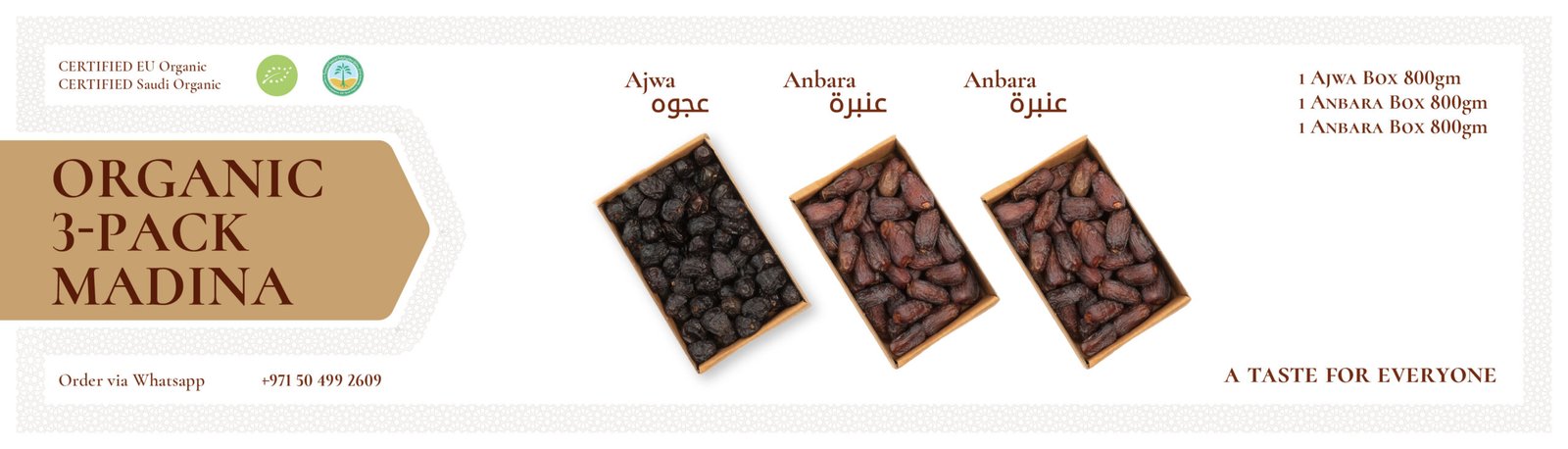 Organic 3 Pack-Madina New Season Grade A (Ajwa, Majdoul, Majdoul)