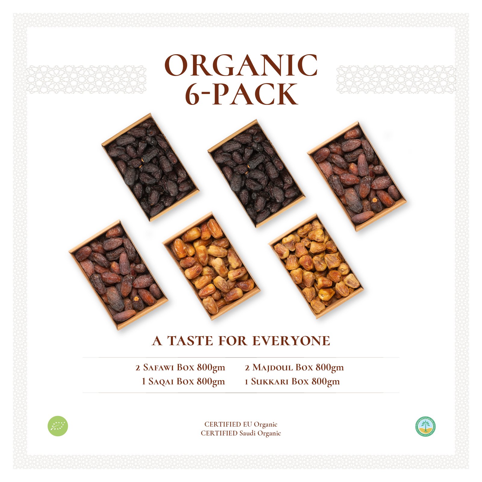 A Collection of Madina and Saudi Organic Dates packed for our date lovers.